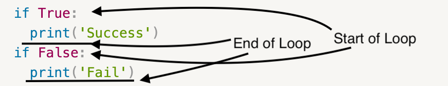 Using logic, we can predict that the “if True:” loop will run because of the obvious statement of “if True”; the same is with the “if False:” loop.